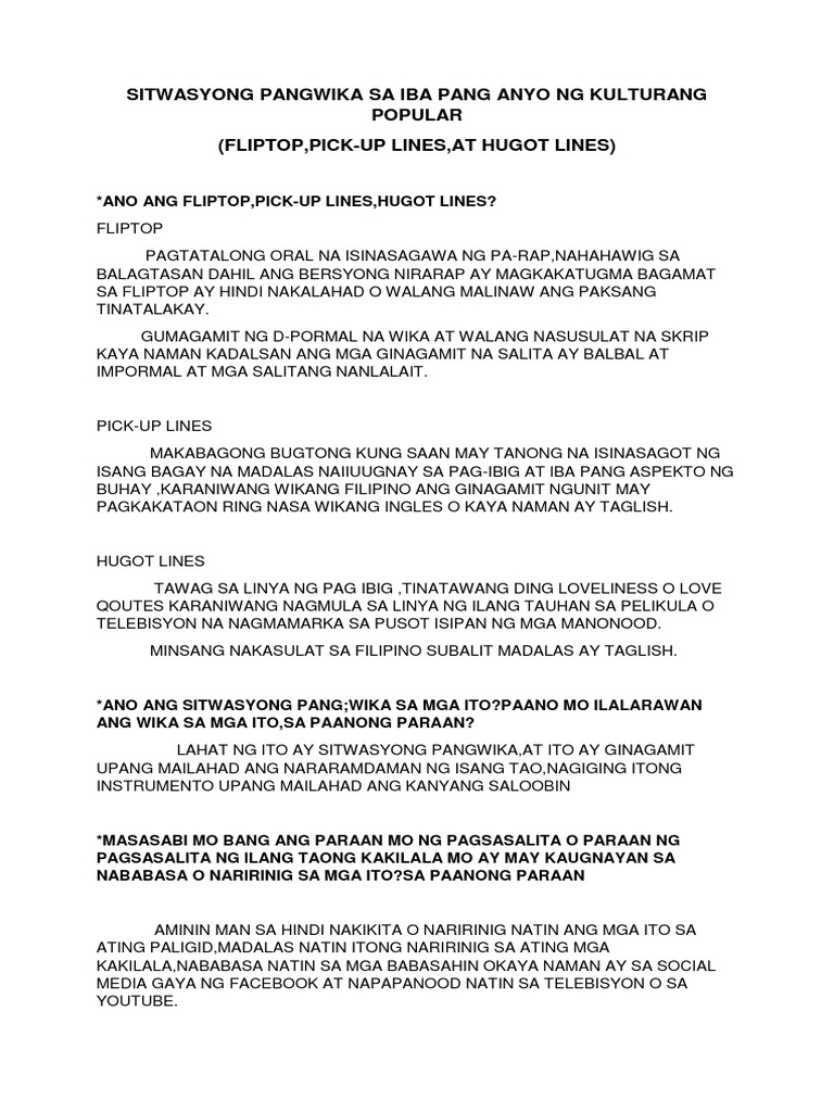 Limbaga Pptm Sitwasyong Pang Wika S A Pick Up Lines At Hugot Lines Ano Nga Ba Ang Pick Up Lines Ang Pick Up Lines Ay Isang Paraan Ng Pagbubukas Ng Course Hero